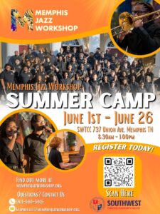 Join the Memphis Jazz Workshop this summer! This 4-week camp is designed for musicians ages 12–18 with a passion for music. Students will develop their jazz skills, explore the rich musical heritage of Memphis, and perform in a live concert for family and friends.