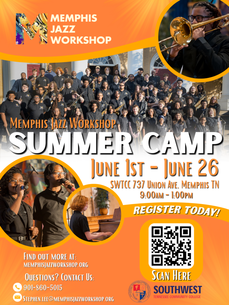 The Memphis Jazz Workshop Summer Camp enrollment is open too emerging jazz musicians ages 10-18 years old. We are one of the only workshops of this kind in the Memphis area that offers jazz-focused instruction at this level and frequency. Memphis Jazz Workshop is nurturing some of the city’s most talented young people. We focus on discipline, work ethic, music education and ultimately mastery. At the Memphis Jazz Workshop courses range from beginner to advanced, include performance technique masterclasses, sectionals, music theory, improvisation, and combos. We also offer many special performance opportunities.